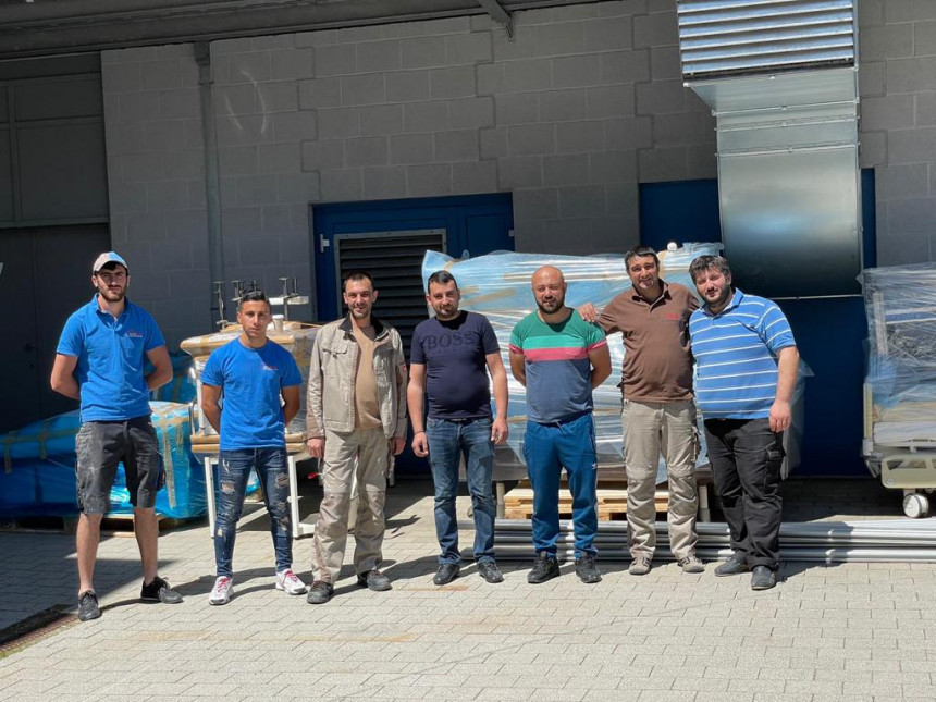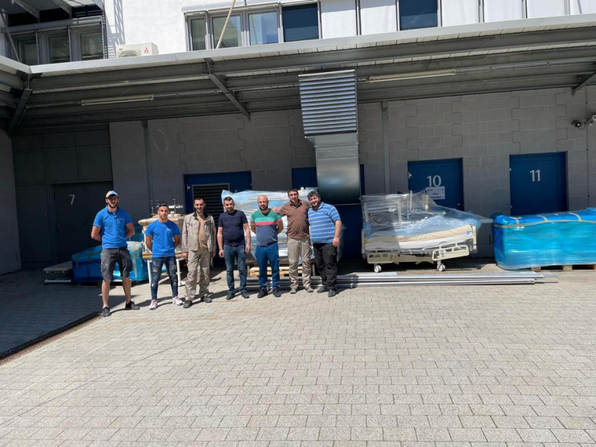 Das Unternehmen „Menk Automobile" hat viele Rollstühle und Rollatoren gespendet, die mit der Unterstützung der Armenischen Kirchen- und Kulturgemeinde Berlin nach Amberg in Bayern transportiert wurden. Dort sind dank der Armenischen Gemeinde in Nürnberg weitere Hilfen für die Rehabilitationszentren in Armenien und in Arzach, wie Badewannen, Aufzüge für Behinderte, Sterilisationsgeräte und andere medizinische Hilfsanlagen hinzugekommen. Die Gesamtware wurde in einen 24t Lastkraftwagen geladen, der anschließend nach Augsburg gefahren ist, wo die Freunde aus der Armenischen Landmannschaft in München den Lkw mit Betten, orthopädischen Geräten, medizinischen Hilfsmitteln aus dem Depot der Internationalen Gesellschaft der Orientalischen Christen beladen haben.